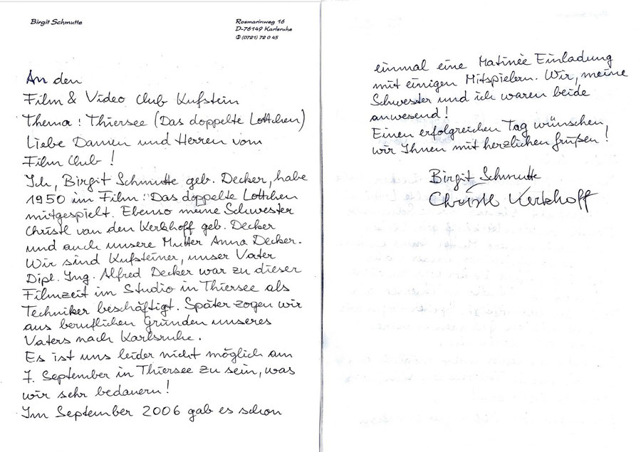 Am Ende der Ferien vertauschen die Zwillinge ihre Rollen, was wegen der unterschiedlichen Fähigkeiten und Charaktereigenschaften zu einiger Verwirrung bei ihren nichtsahnenden Eltern führt. Als Lotte erfährt, dass ihr Vater wieder heiraten will, wird sie vor Kummer krank. Die Mutter erfährt durch einen Zufall von der Begegnung der Schwestern und schließlich auch von der Krankheit. Mutter und Luise fahren nach Wien, wo die Familie wieder zusammenfindet.
